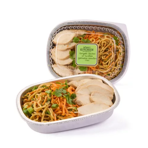 A savory single-serving meal with glazed teriyaki chicken and stir-fried scallion yakisoba noodles—hearty, flavorful, and satisfying.