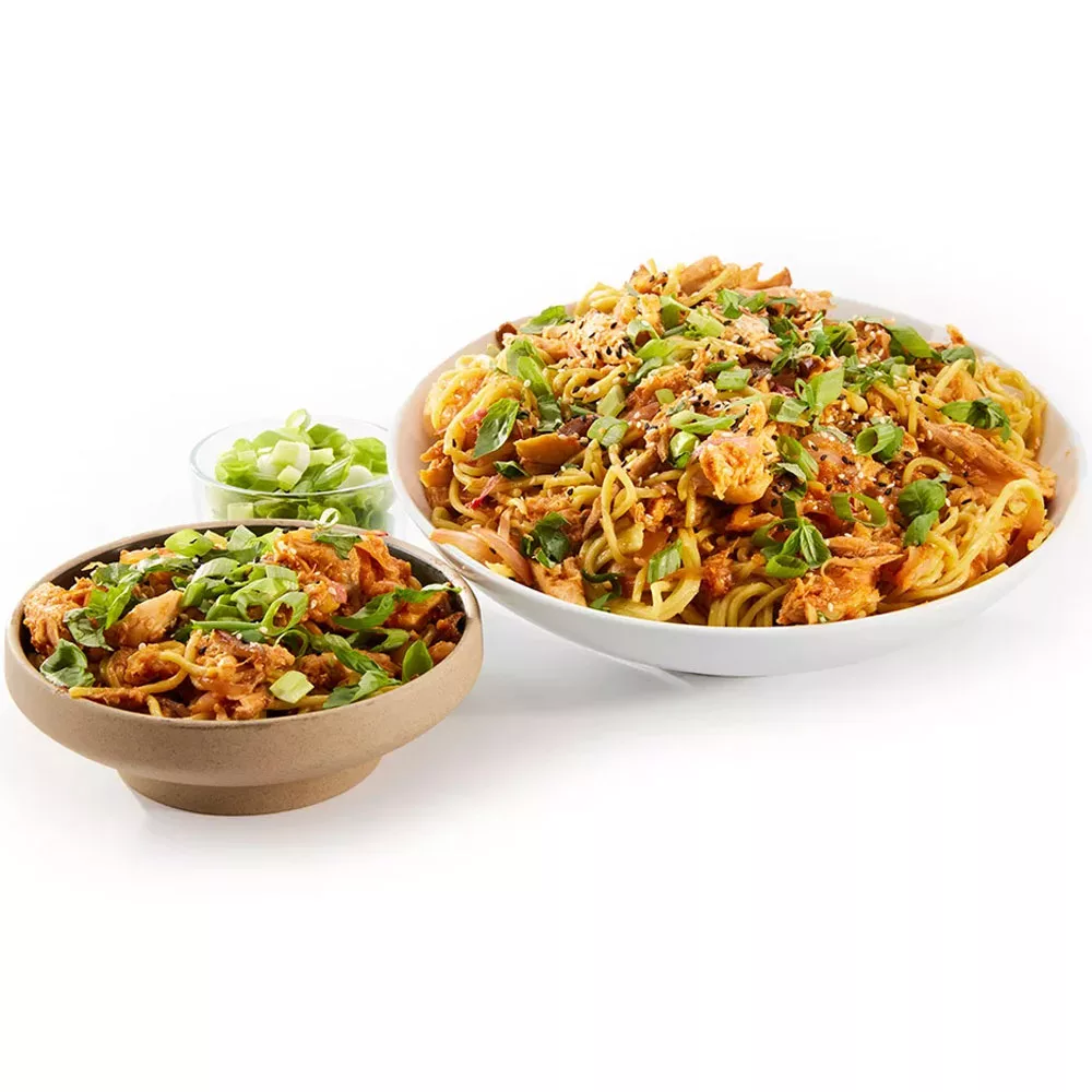 A savory single-serving meal with glazed teriyaki chicken and stir-fried scallion yakisoba noodles—hearty, flavorful, and satisfying.