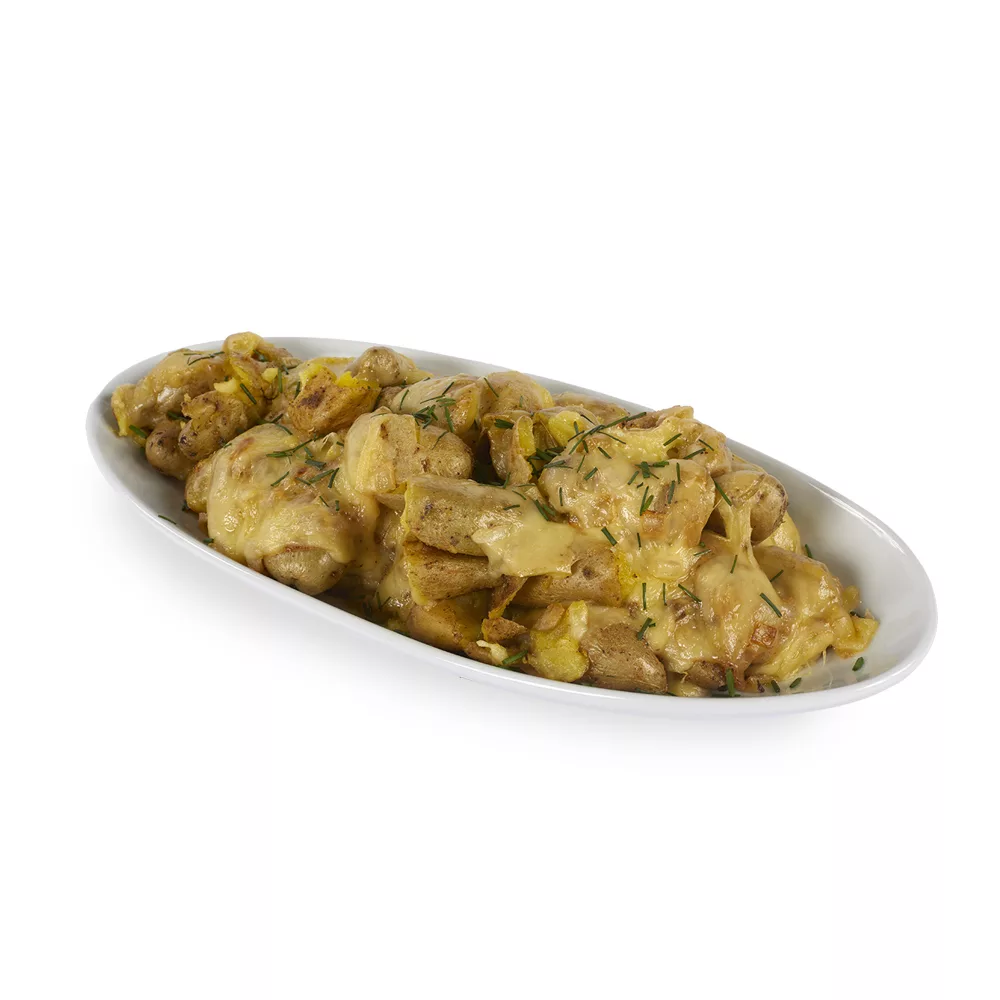 Smashed Fingerling Potatoes w/Raclette