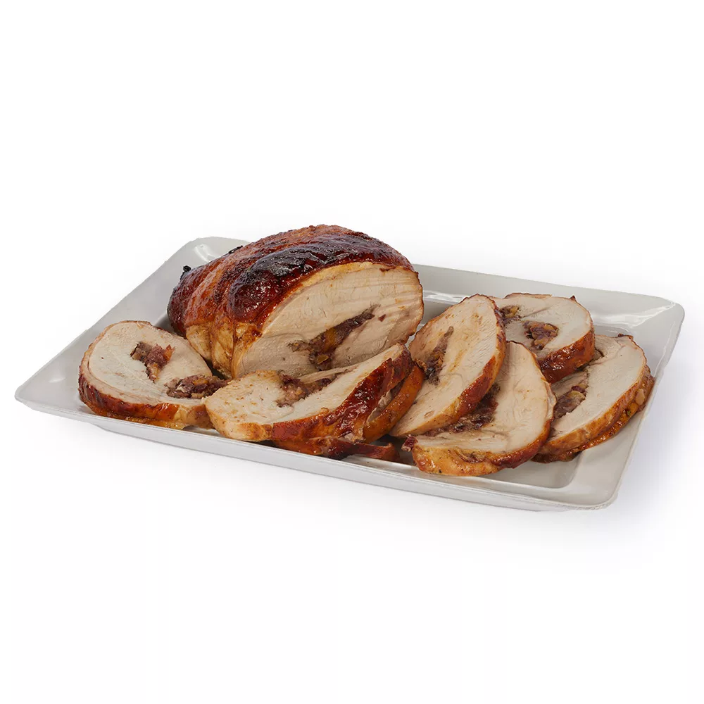 Fully cooked Diestel turkey breast stuffed with herbs and fruit.