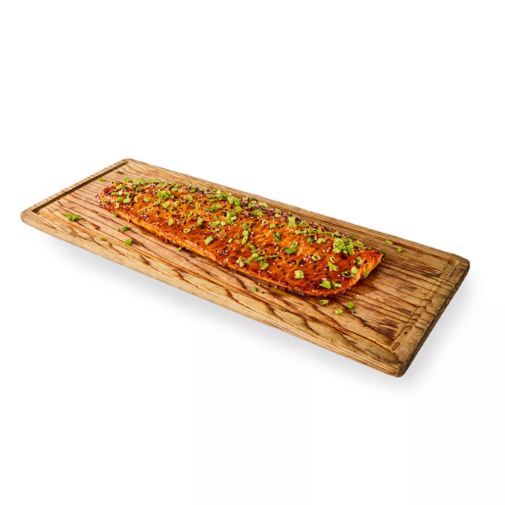 Sustainably raised fillet of salmon in a sweet and savory Korean BBQ sauce, topped with sesame seeds.