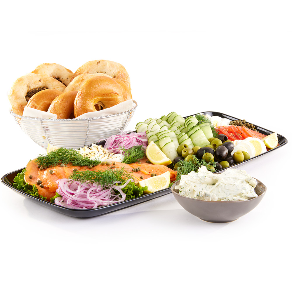 A bountiful collection of lox, lemon dill cream cheese spread, tomatoes, capers and all the fixings. Comes with eight bagels.