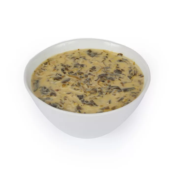 Ingredients: Spinach, Coconut Milk, Yellow Onion, Red Pepper Flakes, Lime Juice, Vegetable Stock, Parsley, Thyme, Coriander, Mace, Garlic, Cumin, Black Pepper, Salt