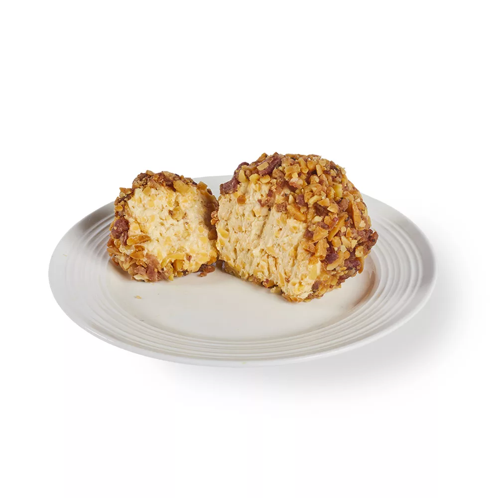 A smoked Gouda cheese spread rolled in toasted almonds and bacon.