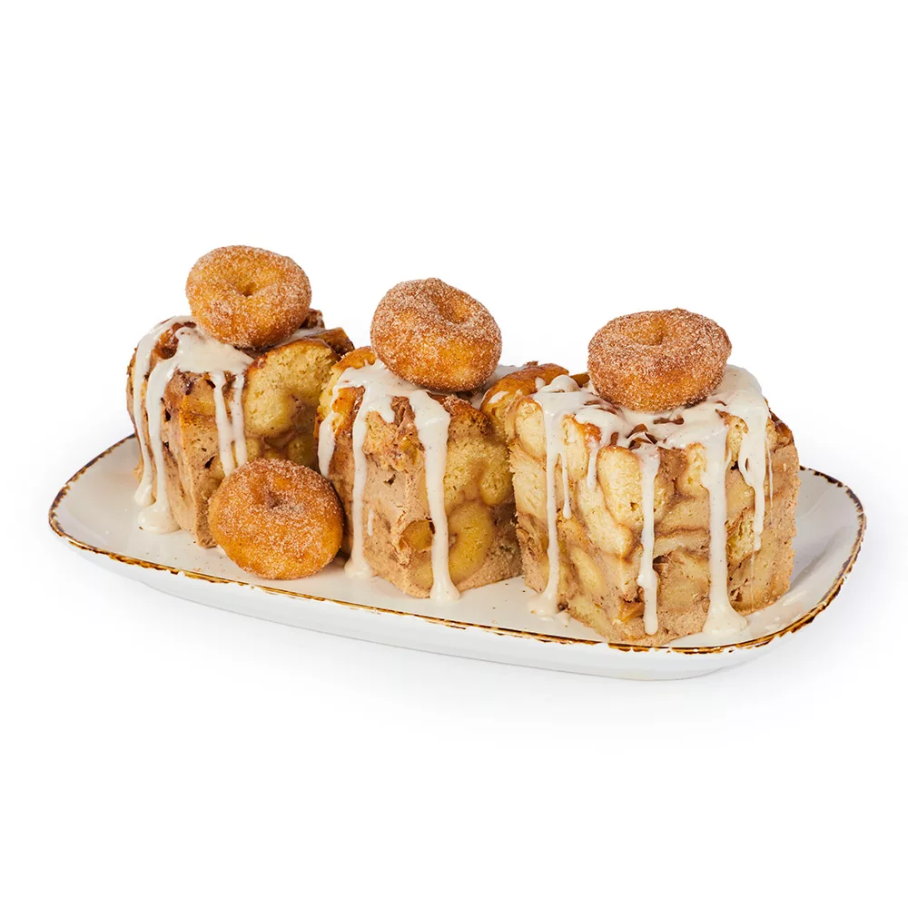 Custard-soaked apple cinnamon donuts with cider glaze.
